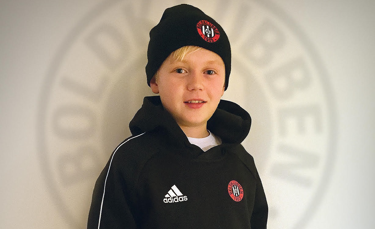 Nedenfor ses seje Gilbert fra U11 i B1903-hættetrøjen og B1903-huen.