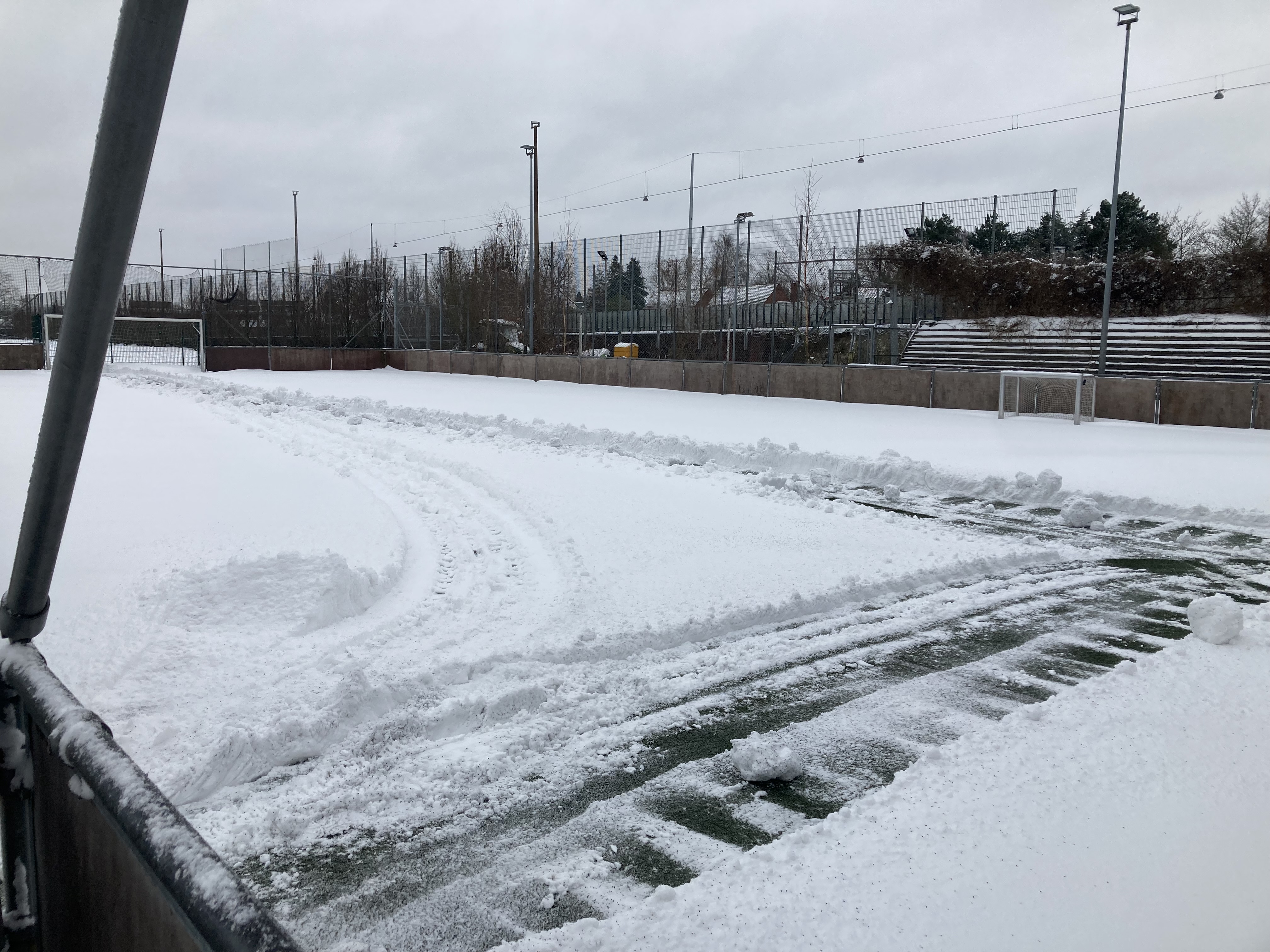 Vi kæmper p.t. stadig med bandebanen. Det når heller ikke at blive ryddet til i dag.